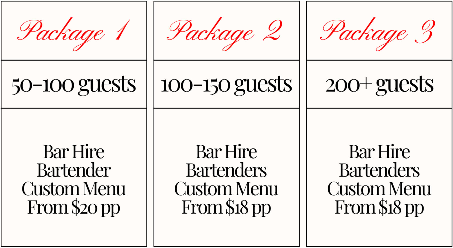* Custom solutions apply for every booking. We can work with most budgets ** Due to high demand, please try to book in advance to secure a date in our calendar *